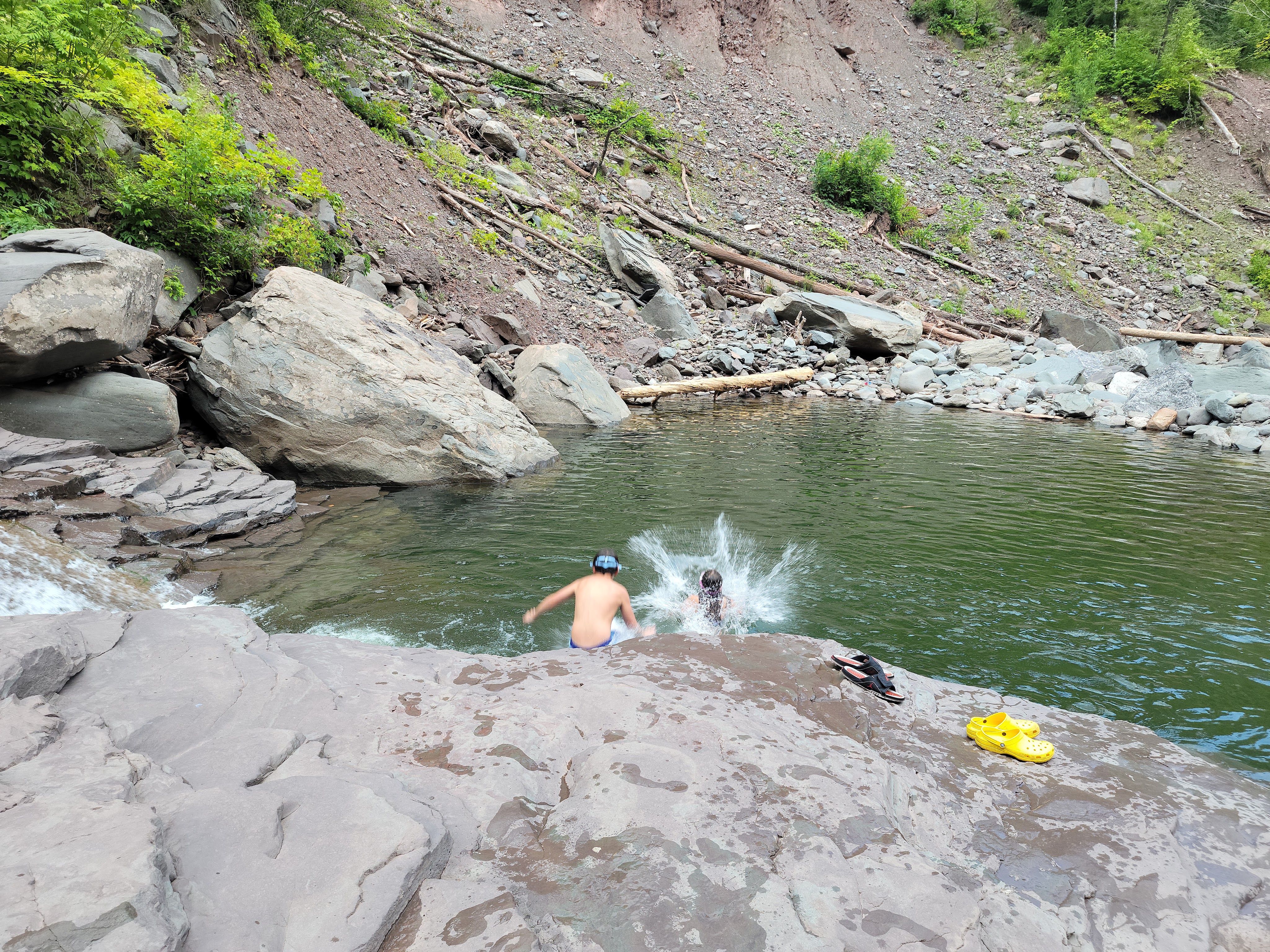 We have already been camping in the Catskills, swam in a natural pool in the Catskills (see photo), had a visit with family from Cali, went to Howe Caverns, and laughed a lot.
